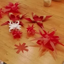 Wir möchten auch in diesem Jahr dazu beitrgen, dass Geflüchtete Bräuche und Traditionen zum Weihnachtsfest in Deutschland kennenlernen. Nachdem wir in den vergangenen Jahren gemeinsam Plätzchen gebacken und Weihnachtsgestecke gebastelt haben, werden wir in diesem Jahr Papiersterne, Papierleuchter und kleine Geschenkschachteln basteln.